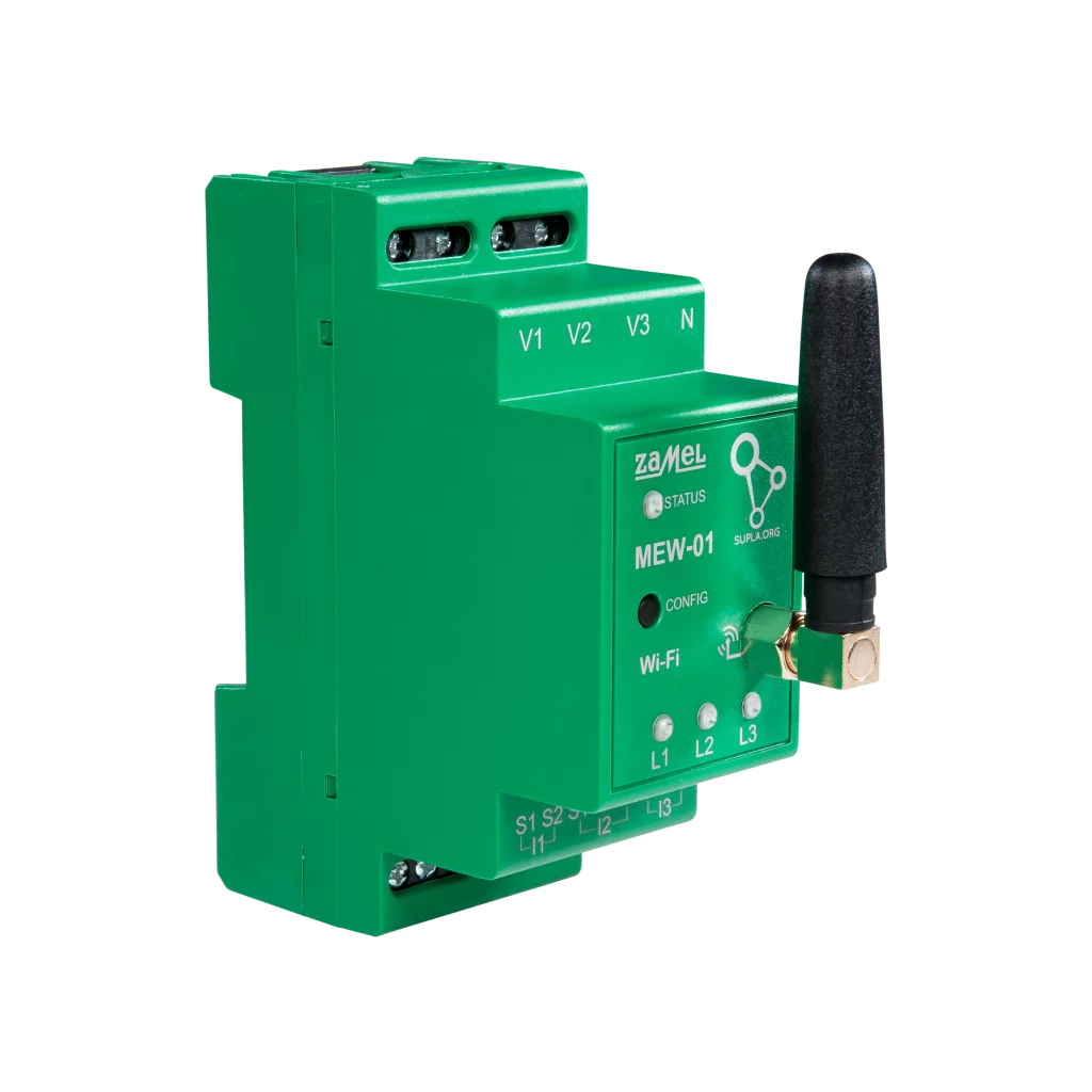 MEW-01 jest monitorem 3-fazowym i dwukierunkowym. Jest więc odpowiedni do monitorowania zarówno energii pobranej i oddanej do sieci energetycznej. Łączność Wi-Fi sprawia, że nie jest konieczne prowadzenie nowych przewodów, a zgromadzone dane pomiarowe analizowane są w aplikacji mobilnej Supla*.